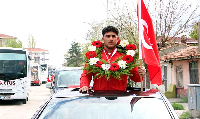 Milli takım forması giymeye hak kazanan Edirneli güreşçi, mahallesinde davul ve zurnayla karşılandıUmut IŞIK - Batuhan SEVER / EDİRNE, (DHA)- TÜRKİYE Güreş Federasyonu tarafından Kütahya'da düzenlenen U17 Yıldız Erkekler Türkiye Güreş Şampiyonası'nda 110 kiloda Türkiye 2'ncisi olup, milli takım forması giymeye hak kazanan Teyfik Gülter (17), memleketi Edirne'de mahalle sakinlerince araç konvoyu eşliğinde davul ve zurnayla karşılandı
