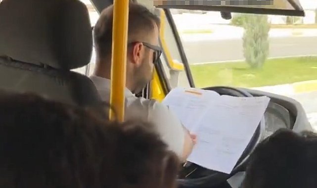 Minibüs şoförü, direksiyonda kitap okurken görüntülendi