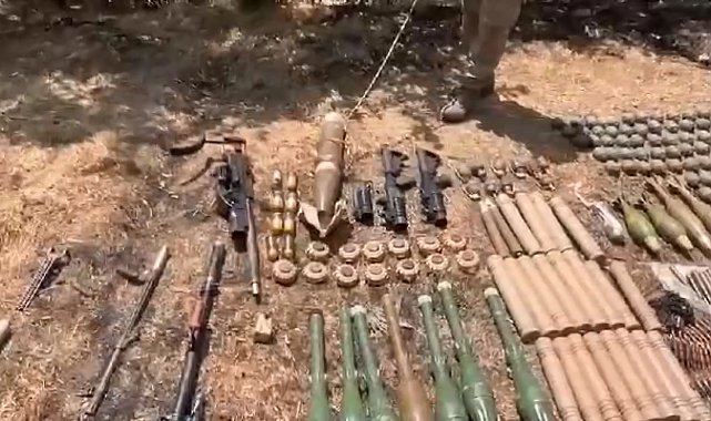 MİLLİ Savunma Bakanlığı (MSB), Irak'ın kuzeyindeki Dergele köyünde tespit edilen sığınakta, çok sayıda silah ve mühimmat ele geçirildiğini duyurdu.Bakanlığın sosyal medya hesabından yapılan açıklamada, "Kahraman komandolarımız Dergele köyü kuzeyinde icra edilen arama-tarama faaliyetlerinde tespit edilen bir sığınakta çok sayıda silah, mühimmat ve yaşam malzemesi ele geçirdi. Bölgede ele geçirilen malzemeler şöyle: 3 adet 40 mm bombaatar silahı, 1 adet doçka makineli tüfek ve namlusu, 68 adet taarruz tipi el bombası, 10 adet savunma el bombası, 7 adet sis bombası, 5 adet el yapımı el bombası, 13 adet antipersonel mayını, 8 adet bombaatar mühimmatı, 7 adet antitank roket mühimmatı, 23 adet antipersonel roket mühimmatı, 5 adet havan mühimmatı, 1 adet 122 mm top mühimmatı, 30 adet 20 mm top mühimmatı, çok sayıda 5,56 mm, 7,62 mm ve 12,7 mm mühimmatı, 4 adet hassas başlık, 1 adet 7,62 mm PKMS makineli tüfek namlusu, 1 adet monte hamili, 1 adet keskin nişancı tüfeği susturucu. Ayrıca, çok sayıda tıbbi malzeme ve gıda malzemesi ele geçirilmiştir" denildi.
