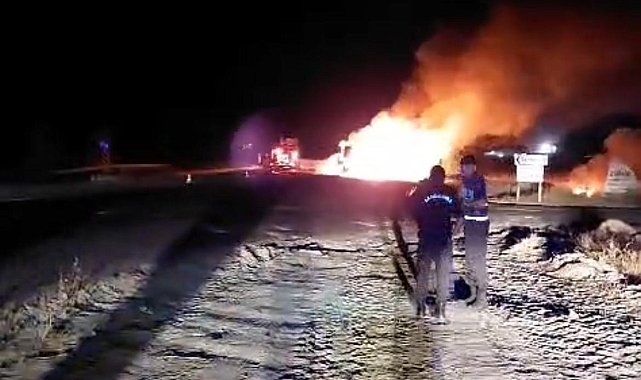 Nevşehir'de seyir halindeki TIR yandı