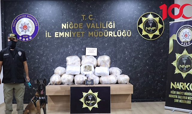 Niğde'de polisin durdurduğu TIR'dan 86 kilo 950 gram esrar ele geçirildi