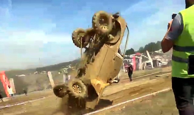 Kocaeli'nin Gebze ilçesinde düzenlenen Off-Road Festivali'nde, Sapanca OFF-Road Kulübü sporcularının aracı yarış sırasında takla attı. Kazada, off-road aracındaki 2 sporcu da yara almazken, aracın metrelerce yükseldiği ve takla attığı anlar kameraya yansıdı.Kocaeli'nin Gebze İlçesinde düzenlenen "Gebze 2'nci Off-Road Festivali düzenlendi. 1-2 Haziran günlerinde düzenlenen festivalde, sürücüler, off-road araçlarıyla çamurlu ve engebeli etapları geçmeye çalışırken, heyecanlı anlar yaşandı. Extrem etabında sürücüler, en iyi süreyi elde etmek için mücadele etti. Bu yıl ikincisi düzenlenen festivale, 120 araç ve 240 sporcu katılırken, Sapanca Belediyesi adına yarışan Sapanca Off-Road Kulübü takımı S4 Klasmanı'nda Selahattin Seçgin - Engin Arslan ikilisi birinci oldu.TAKLA ATTI, YOLUNA DEVAM ETMEYE ÇALIŞTISapanca Belediyesi adına yarışan Sapanca Off-Road Kulübü üyeleri Pilot Muhammed Ali Yılmazer ve Co-pilot İsmail Öztaş'ın bulunduğu araç, dün gerçekleştirilen etapta yarış sırasında parkurda takla attı. Aracın pilotu taklaya rağmen ilerlemeye çalıştı, ancak arıza sebebiyle durmak zorunda kaldı. Araçtaki 2 sporcu da kazadan yara almadan kurtuldu. Kaza anı kameralara yansıdı. Görüntülerde parkurdan geçen arazi aracının yerden havalanması ve ön kısmı ile yere çakılması sonrası takla atarak tekrar düz durması yer aldı.