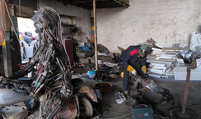 Öğrencisinden kaynak yapmayı öğrendi, 4 yılda 20 ton atıktan 23 heykel yaptı