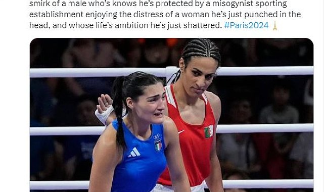 Şara Zehra ÖZBEY, (DHA) – Paris 2024 Olimpiyat Oyunlarında kadınlar 66 kilo son 16 turunda İtalyan boksör Angela Carini, cinsiyet uygunluk testlerini geçememesi sebebiyle geçtiğimiz yıl dünya şampiyonasından diskalifiye edilen Cezayirli boksör Imane Khelif'le karşılaştığı maçta 46