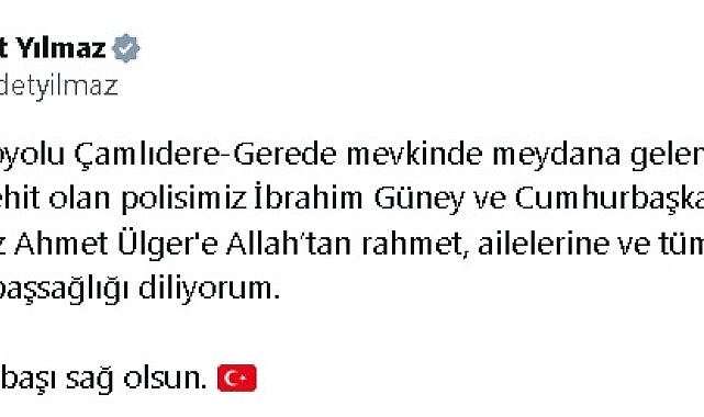 CUMHURBAŞKANI YARDIMCISI YILMAZ'DAN TAZİYE MESAJICumhurbaşkanı Yardımcısı Cevdet Yılmaz, sosyal medya hesabından taziye mesajı paylaştı