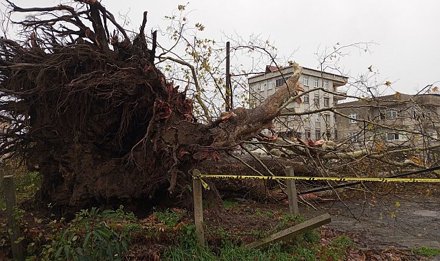 Samsun'da şiddetli rüzğarda 600 yıllık çınar ağacı devrildi