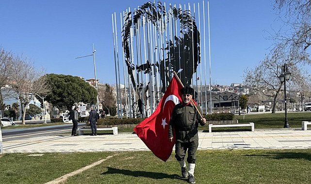 ÇANAKKALE Savaşı gazisi torunu Saffet Gümüş, zaferin 110'uncu yılında, İstanbul'dan Çanakkale'ye 'Torundan Dedeye Vefa Yürüyüşü'nde Tekirdağ'a ulaştı.'18 Mart Çanakkale Zaferi ve Şehitleri Anma Günü' etkinlikleri kapsamında, Çanakkale Savaşı gazisi torunu ve Tokat Onbeşli Torunları Derneği Başkanı Saffet Gümüş, İstanbul'dan başlattığı 'Torundan Dedeye Vefa Yürüyüşü'nün 4'üncü gününde Tekirdağ'a ulaştı. Bu yıl yürüyüşünün 7'ncisini gerçekleştiren Gümüş, üzerindeki o dönemin askeri üniforması ile Tekirdağ'da vatandaşların ilgisini gördü. Gümüş'ü, Tekirdağ sahilinde Süleymanpaşa Belediye Başkan Yardımcısı Ergün Güleryüz karşıladı.Elinde sancak ile yürüyerek Çanakkale'ye giden Saffet Gümüş, "Atalarımızın bize emanet etmiş olduğu bu toprakları, bu al bayrağı ölene kadar bir ömür boyu taşımaya çalışacağız. O ruhu gelecek nesillere taşımaya çalışacağız. 3 gün önce Avcılar Belediye Başkanımız Utku Caner Çaykara'dan almış olduğumuz bu al bayrağı nasip olursa 18 Mart günü Çanakkale Valimize teslim edeceğiz. Orada şehitlerimize dualarımızı okuyarak nasip olursa sağ salim İstanbul'a dönmeye çalışacağız" diye konuştu.Gençlere çağrıda bulunan Gümüş, "Şükürsüz olmayın, halimize şükredelim. Bizim gidecek başka bir vatanımız yok. Vatanımıza, bayrağımıza, devletimize sahip çıkalım" dedi.