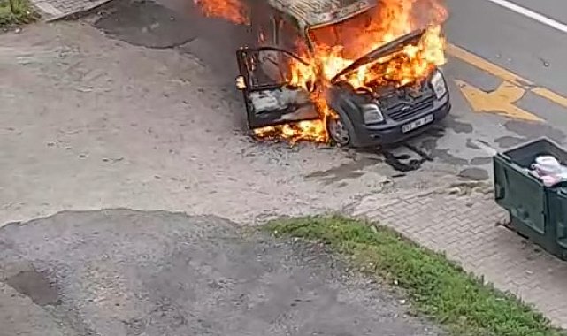 RİZE'de seyir halindeki hafif ticari araç, motor kısmından alev aldı. Sürücünün araçtan çıkarak kurtulduğu yangın, itfaiye ekiplerince söndürüldü. Aracın alev topuna döndüğü anlar, cep telefonu kamerasına yansıdı. Gülbahar Mahallesi Yenişehir Caddesi'nde seyreden 53 HN 915 plakalı hafif ticari araç, sabah saatlerinde motor kısmından alev aldı. Dumanları fark eden sürücü, aracını durdurup dışarı çıktı. Bu sırada alevler, bir anda tüm aracı sardı. İhbarla adrese gelen itfaiye ekipleri, yangını söndürdü. Hafif ticari aracın alev topuna döndüğü anlar, çevredekiler tarafından cep telefonu kamerasıyla görüntülendi. Görüntülerde; yol kenarındaki otomobilin alev topuna dönmesi ve itfaiye ekiplerinin yangını söndürme anları yer aldı. Hafif ticari araç da kullanılamaz hale geldi.