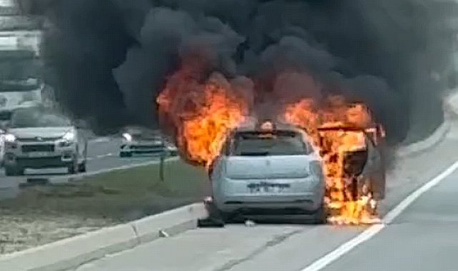BURSA'da, seyir halindeyken motor kısmından dumanlar yükselen otomobil, alev aldı. Sürücünün yol kenarına park edip indiği otomobildeki yangın, itfaiye ekipleri tarafından yarım saatte söndürüldü.Bursa-Ankara kara yolunda İnegöl ilçesine doğru seyir halinde olan Ömer K. (40) yönetimindeki 16 KLT 27 plakalı otomobilin motor kısmından, saat 14.00 sıralarında, dumanlar yükseldi. Ömer K.'nin yol kenarına park edip indiği, otomobil bir anda alev aldı. İhbarla olay yerine itfaiye ekipleri sevk edildi. Yangın, itfaiyecilerin yarım saatlik müdahalesiyle söndürülürken, otomobil kullanılamaz hale geldi.