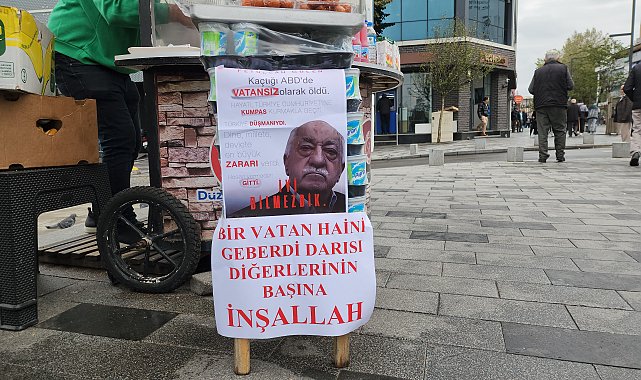 Tezcan SOLMAZ/DÜZCE, (DHA)- DÜZCE'de seyyar simitçi Ercan Biltaş (33), FETÖ elebaşı Fetullah Gülen'in ölümünün ardından tezgahına 'Bir vatan haini geberdi