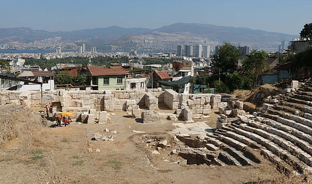 Yağmur ÖNGÜN/İZMİR, (DHA)-İZMİR'in Konak ilçesinde Kadifekale'nin eteklerinde yer alan Smyrna Tiyatrosu'nun kazı çalışmaları sürüyor