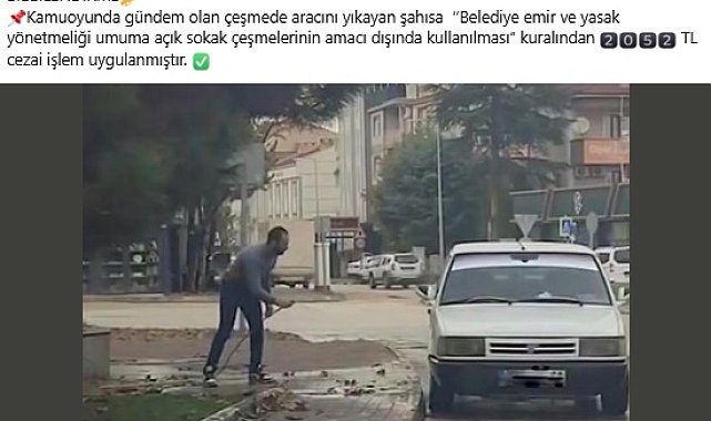 Sokak çeşmesine hortum takıp aracını yıkayan sürücüye 2 bin 52 TL ceza