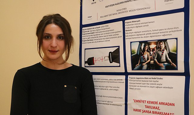 Mutlu YUCA-Zübeyde ÖZMEN/BOLU, (DHA)- BOLU Abant İzzet Baysal Üniversitesi Bolu Meslek Yüksekokulu 2'nci sınıf öğrencisi Aslıhan Eğrek (26), direksiyon başında kalp krizi geçiren sürücülerin kaza yapmalarının önüne geçilmesi için 'Kalp Atışını Algılayan Akıllı Emniyet Kemeri' projesini hazırladı
