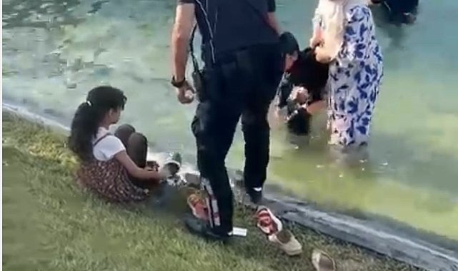 Süs havuzunda boğulma tehlikesi geçiren çocukları, polis ekipleri fark ederek kurtardı