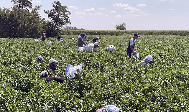 EDİRNE'nin meşhur tava ciğerinin vazgeçilmezi olarak nitelendirilen, yöreye özgü Karaağaç acı biberi, bu yıl etkisini gösteren kavurucu sıcaklar nedeniyle strese girince, hasadı yaklaşık 1 ay geç başladı. Trakya Üniversitesi'nden Prof. Dr. Yalçın Kaya, "Sıcaklar aşırı olduğu için üründe çiçekler döllenme yapamadı. Aşırı sıcaklar döllenmeyi engellediği için ürün geç çiçek tutmaya başladı" dedi.Karaağaç Mahallesi'nde üreticiler, tava ciğerin yanında ana garnitür olarak sunulan acı biber için hasat mesaisine başladı. Kentin meşhur tava ciğerinin yanında adını duyuran ve sadece Yunanistan sınırındaki Karaağaç Mahallesi'ndeki tarlalarda yetişen biber, hasat edildikten sonra iplere dizilip gölgede kurutulacak. Trakya Üniversitesi Mühendislik Fakültesi Genetik ve Biyomühendislik Bölüm Başkanı ve Bitki Islahı Merkezi Müdürü Prof. Dr. Yalçın Kaya, aşırı sıcakların yöreye özgü Karaağaç biberini de olumsuz etkilediğini söyledi. Kaya, "Sıcaklar aşırı olduğu için üründe çiçekler döllenme yapamadı. Aşırı sıcaklar döllenmeyi engellediği için ürün geç çiçek tutmaya başladı" dedi.'KAVURUCU SICAKLARDAN DOLAYI ÜRÜNÜMÜZ STRESE GİRDİ'Bu yıl yaklaşık 200 ton verim beklediklerini söyleyen üretici Tunahan Ule, bölgede etkisini gösteren kavurucu sıcaklar nedeniyle, ürünün strese girdiğini, bu nedenle hasadın 1 ay geciktiğini söyledi. Kente özgü Roman havaları eşliğinde tarlada çalışan işçiler de 35 dereceyi bulan sıcak altında dans ederek stres attı.Hasadın bu yıl keyifli başladığını belirten Tunahan Ule, "Tescilli Karaağaç biberi yetiştiriyoruz. Bugün de burada hasat yapıyoruz. Hasadımız çok keyifli geçiyor. Bu sene hasadımız geç başladı. Kavurucu sıcaklarda dolayı ürünümüz strese girdi. Bu biber tamamen yerli tohum, ata tohumu. Dedemizin dedesinden kalma. O yüzden çok çabuk strese girebiliyor" diye konuştu. Biberin yılda sadece 2 kez hasat edilebildiğini belirten Ule, "Biberimizi yılda sadece 2 kez toplayabiliyoruz. 3 kez toplayamazsınız. Buradan toplandıktan sonra imece usulüyle tek tek iplere dizilecek. Oradan sonra askıya asıp kuruma bırakıyoruz. Bu aşamada da gölgede kalması, güneş görmemesi gerekiyor. Nem olan yerde kesinlikle kurumaz. 35-40 derecede yaklaşık 1 aylık süreçte kurumuş oluyor ürünümüz" ifadelerini kullandı. '200 TONA YAKIN VERİM BEKLİYORUZ'Ule, "Biberimiz sadece Karaağaç Mahallesi'nde ve sınır bölgesinde yetişiyor. En büyük özelliği ince kabuklu olması. Suya yakın olan tarlalarda veya ovada yetişmiyor, sadece sınır bölgesinde yetişiyor. Edirne Tava Ciğeri'nin de en büyük yol arkadaşı. Ciğer olmazsa biber olmaz, biber olmazsa ciğer olmaz. Şu anda burada 95 dönüm ekili alanımız var. 45 kişilik ekiple beraber biber topluyoruz. Çok keyifli bir hasat geçiyor. Totalde 200 tona yakın hasat bekliyoruz. Şu anda yaş biberin fiyatı 85 TL, kuru biberin fiyatı henüz belli değil" dedi.İŞÇİLERE DEVA-İ MİSK HELVASI İKRAMIEdirneli şekerlemeci Arif Meriç de hasat yapılan tarlada, işçilere deva-i misk helvası ikram etti. İşçiler bir yandan Roman havalarıyla oynarken, bir yandan da helvanın tadına baktı. Biberin bin bir uğraşla toplanıp hazırlandığını dile getiren Meriç, "Burada aslında bir alın teri var. Edirne'nin tava ciğerinin yanında sunulan, dünyanın en tatlı acı biberi bin bir meşakkatle hazırlanıyor. Burada her gün çalışan kardeşlerimiz var. Biz de onlara her sabah gelip Edirne'nin deva-i misk helvasını veriyoruz. Bu topraklar çok bereketli. Dünya'nın hiçbir yerinde yetişmeyen Edirne'nin meşhur Karaağaç biberi burada yetişiyor. Dünyanın dört köşesinden gelip, Edirne'nin meşhur Karaağaç biberini tatmadan gitmiyorlar" diye konuştu.'HEM EĞLENİYORUZ, HEM HASAT YAPIYORUZ'İşçilerden Serpil Örs de sıcak altında hasadın zor olduğunu belirtip, artık alıştıklarını ifade etti. Örs, "Bu sıcakta hasat zor oluyor. Sonuçta can taşıyoruz ve sıcakta toprakla uğraşıyoruz. Ama biz sıcağa artık alıştığımız için hem eğleniyoruz hem hasat yapıyoruz. Günlük 700 TL yevmiye alıyoruz. Sabah 08.00'den akşam 18.30'a kadar çalışıyoruz. Her yıl yaptığımız iş olduğu için alışkınız" dedi.