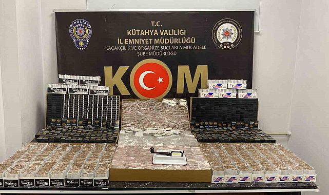 Kütahya'nın Tavşanlı ilçesinde polis ekiplerinin operasyonunda 71 bin 420 adet dolu, 600 adet bandrolsüz boş makaron ile küçük manuel makaron doldurma makinesi ele geçirildi.