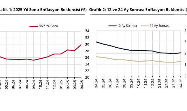 TÜRKİYE Cumhuriyet Merkez Bankası (TCMB), piyasa katılımcılarının enflasyon beklentilerinin nisanda arttığını açıkladı.TCMB, Nisan 2025 dönemine ilişkin Piyasa Katılımcıları Anketi verilerini açıkladı. Buna göre; katılımcıların cari yıl sonu tüketici enflasyonu beklentisi bir önceki anket döneminde yüzde 28,04 iken, bu anket döneminde yüzde 29,98 oldu. 12 ay sonrası TÜFE beklentisi bir önceki anket döneminde yüzde 24,55 iken, bu anket döneminde yüzde 25,56 oldu. 24 ay sonrası TÜFE beklentisi ise 17,06'dan ve yüzde 17,69'a çıktı. Katılımcıların cari yıl sonu döviz kuru (Doları/TL) beklentisi, bir önceki anket döneminde 42,79 TL iken, bu anket döneminde 43,60 TL oldu. 12 ay sonrası döviz kuru beklentisi ise bir önceki anket döneminde 44,42 TL iken, bu anket döneminde 45,85 TL olarak gerçekleşti. Katılımcıların 2025 yılı büyüme beklentisi, bir önceki anket döneminde yüzde 3,1 iken, bu anket döneminde yüzde 3 olarak gerçekleşti. 2026 yılı büyüme beklentisi ise bir önceki anket döneminde yüzde 4 iken, bu anket döneminde yüzde 3,8 olarak gerçekleşti.