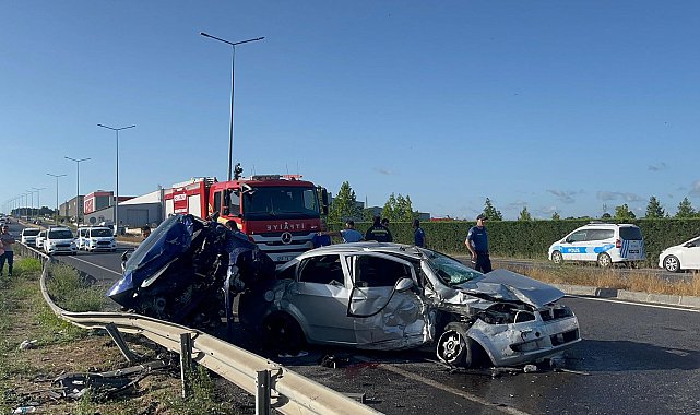 Tekirdağ'da iki otomobil kafa kafaya çarpıştı; 6 yaralı