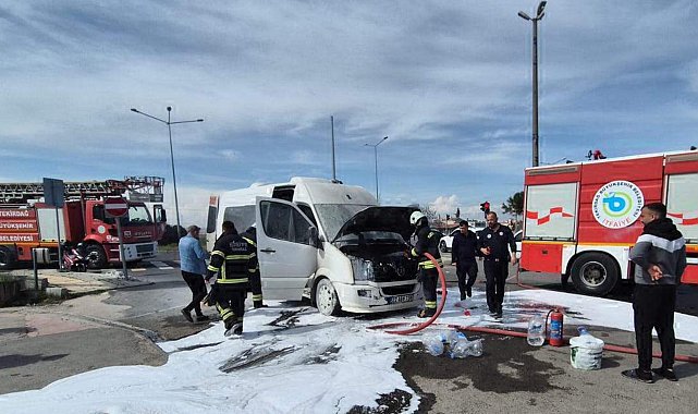 TEKİRDAĞ'ın Marmaraereğlisi ilçesinde seyir sırasında alev alan yolcu minibüsü, itfaiye ekipleri tarafından söndürüldü.İstanbul'dan Edirne'nin Keşan ilçesine giden Hasan T. yönetimindeki 22 ABV 738 plakalı yolcu minibüsünün motor kısmında, Sultanköy Mahallesi Çınaraltı mevkisinde duman yükseldi. Şoför Hasan T., durumu fark edip aracı kenara çekerek yolcuları indirdi. Minibüs alev alırken, ihbarla bölgeye jandarma ve sağlık ekipleri sevk edildi. İtfaiye ekiplerinin çalışması ile alevler minibüsü sarmadan söndürüldü. Yangının çıkış nedeni araştırılıyor.