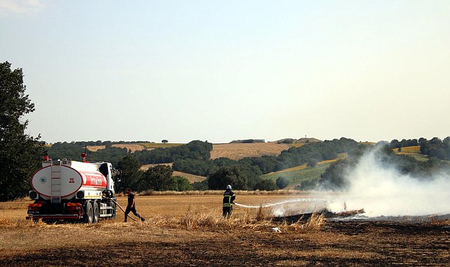 Tekirdağ'daki anız yangını ormana ilerlemeden söndürüldü; 100 dönüm alan zarar gördü