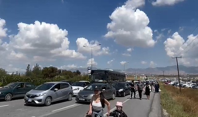 KUZEY Kıbrıs Türk Cumhuriyeti'nde düzenlenen TEKNOFEST'te son gün heyecanı yaşanırken, festivali girişinde yoğunluk devam etti. Sabah saatlerinden itibaren metrelerce araç kuyruğu oluştu. Trafikte ilerleyemeyen bazı vatandaşlar araçlarını yol kenarına park ederken, bazıları ise araçlarından inip yürüyerek alana ulaşmaya çalıştı. TEKNOFEST'te yoğun katılım nedeniyle girişlerde uzun araç kuyrukları oluştu. Metrelerce uzayan kuyruklar nedeniyle bazı vatandaşlar araçlarını yol kenarına park etmek zorunda kaldı. Yoğunlukta ilerlemekte zorlanan birçok kişi ise araçlarından inerek yürüyerek festival alanına ulaşmaya çalıştı.