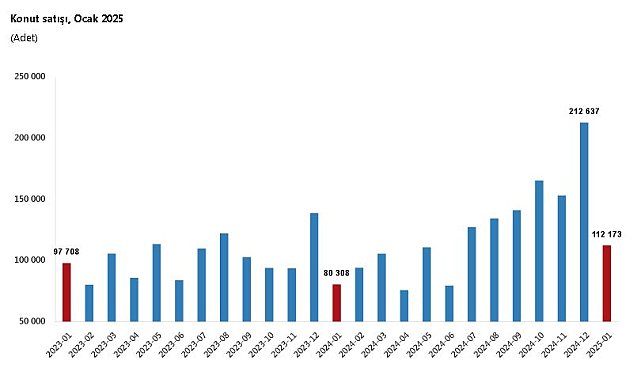 TÜRKİYE İstatistik Kurumu (TÜİK), ocak ayında konut satışlarının bir önceki yıla göre yüzde 39,7 artarak 112 bin 173 olduğunu açıkladı.TÜİK, Ocak 2025 dönemine ilişkin konut satış istatistiklerini açıkladı. Buna göre; Türkiye genelinde konut satışları ocak ayında bir önceki yılın aynı ayına göre yüzde 39,7 oranında artarak 112 bin 173 oldu. Konut satış sayısının en fazla olduğu iller sırasıyla 18 bin 912 ile İstanbul, 10 bin 158 ile Ankara ve 6 bin 634 ile İzmir olurken, en az olduğu iller sırasıyla 39 ile Ardahan, 62 ile Bayburt ve 80 ile Tunceli olarak gerçekleşti.İPOTEKLİ KONUT SATIŞLARI 16 BİN 726 OLARAK GERÇEKLEŞTİTürkiye genelinde ipotekli konut satışları, önceki yılın aynı ayına göre yüzde 182,8 oranında artarak 16 bin 726 oldu. Toplam konut satışları içinde ipotekli satışların payı yüzde 14,9 olarak gerçekleşti. Ocak ayında 3 bin 856 ipotekli konut satışı, ilk el olarak gerçekleşti. Türkiye genelinde diğer konut satışları, bir önceki yılın aynı ayına göre yüzde 28,3 oranında artarak 95 bin 447 oldu. Toplam konut satışları içinde diğer satışların payı yüzde 85,1 olarak gerçekleşti.İLK EL KONUT SATIŞ SAYISI 32 BİN 785 İlk el konut satış sayısı, önceki yılın aynı ayına göre yüzde 29,8 oranında artarak 32 bin 785 oldu. Toplam konut satışları içinde ilk el konut satışının payı yüzde 29,2 oldu. İkinci el konut satış sayısı, önceki yılın aynı ayına göre yüzde 44,2 oranında artarak 79 bin 388 oldu. Toplam konut satışları içinde ikinci el konut satışının payı yüzde 70,8 oldu.YABANCILARA 1547 KONUT SATIŞI GERÇEKLEŞTİYabancılara yapılan konut satışları, ocak ayında bir önceki yılın aynı ayına göre yüzde 24,9 oranında azalarak bin 547 oldu. Ocak ayında toplam konut satışları içinde yabancılara yapılan konut satışının payı yüzde 1,4 olarak gerçekleşti. Yabancılara yapılan konut satış sayısının en fazla olduğu iller sırasıyla 611 ile İstanbul, 469 ile Antalya ve 118 ile Mersin oldu. Ocak ayında ülke uyruklarına göre en fazla konut satışı sırasıyla 248 ile Rusya Federasyonu, 162 ile İran ve 103 ile Irak vatandaşlarına yapıldı.