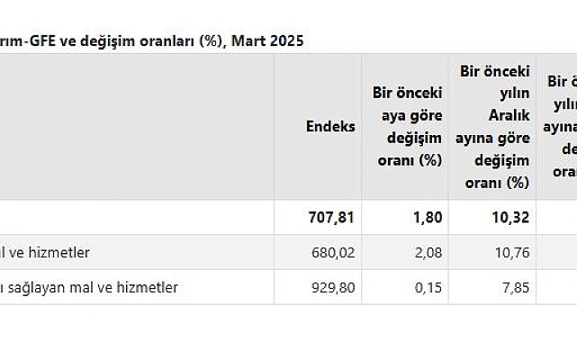 TÜRKİYE İstatistik Kurumu (TÜİK), tarımsal girdi fiyatlarının mart ayında yıllık yüzde 29,73, aylık yüzde 1,80 arttığını açıkladı.TÜİK, Mart 2025 dönemine ilişkin tarımsal girdi fiyat endeksi verilerini açıkladı. Buna göre; tarımsal girdi fiyatları bir önceki aya göre yüzde 1,80, bir önceki yılın aralık ayına göre yüzde 10,32, bir önceki yılın aynı ayına göre yüzde 29,73 ve 12 aylık ortalamalara göre yüzde 36,16 arttı.Ana gruplarda bir önceki aya göre, tarımda kullanılan mal ve hizmetler endeksinde yüzde 2,08 artış, tarımsal yatırıma katkı sağlayan mal ve hizmetler endeksinde yüzde 0,15 artış gerçekleşti. Bir önceki yılın aynı ayına göre tarımda kullanılan mal ve hizmetler endeksinde yüzde 29,10 artış, tarımsal yatırıma katkı sağlayan mal ve hizmetler endeksinde yüzde 33,53 artış gerçekleşti. Yıllık değişimin en yüksek olduğu alt grup yüzde 55,87 artışla veteriner harcamaları, aylık değişimin en yüksek olduğu alt grup yüzde 4,31 artış ile veteriner harcamaları oldu.