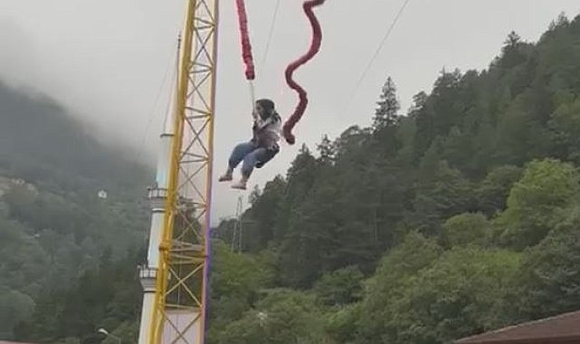 TRABZON'da ünlü turizm merkezi Uzungöl'de, Semanur Şahin, deneyimlemek istediği 'insan sapanı' diye adlandırılan 'bungy catapult'ın esneyebilen halatlardan birinin kopması sonucu ayağından hafif yaralanıp, havada asılı kaldı. O anlar, cep telefonu kamerasına yansıdı.Çaykara ilçesindeki turizm merkezi Uzungöl'ü ziyaret eden Semanur Şahin, arkadaşlarıyla adrenalin yaşamak için 'insan sapanı' diye adlandırılan 'bungy catapult'u deneyimlemek istedi. Esneyebilen halatlı mekanizmaya bağlanan Şahin, yerden metrelerce havaya fırlatıldı. Bu sırada halatlardan birinin kopması sonucu ayağından hafif yaralanan Semanur Şahin, havada asılı kalırken, görevlilerin müdahalesiyle bulunduğu halattan kurtarıldı. Halatın kopma anı ve sonrasında yaşananlar da cep telefonu kamerasıyla kaydedildi. Görüntüde, metrelerce yükseğe çıkan Şahin'in halat kopmasıyla çığlık atarak, hızla düştüğü ve arkadaşların kendisine doğru koştuğu anlar yer alırken, çevredeki görevlinin ise "Abla" diyerek seslendiği duyuldu. 'BU KORKU YAŞANILACAK BİR KORKU DEĞİL'Semanur Şahin korku dolu anlar yaşadığı görüntüyü sosyal medya hesabından "Mesela ben, ihmaller sonucu ölüme bu kadar yaklaşacağımı bilmiyordum. Bu videoyu izlemek en zor bana geliyor ama insanların benim yaşadığım o korkuyu yaşamasını istemiyorum. Bilmeden tam anlamıyla güven vermeyen bir yerde denemelerini istemiyorum. Çünkü bu korku yaşanılacak bir korku değil" notuyla paylaştı.