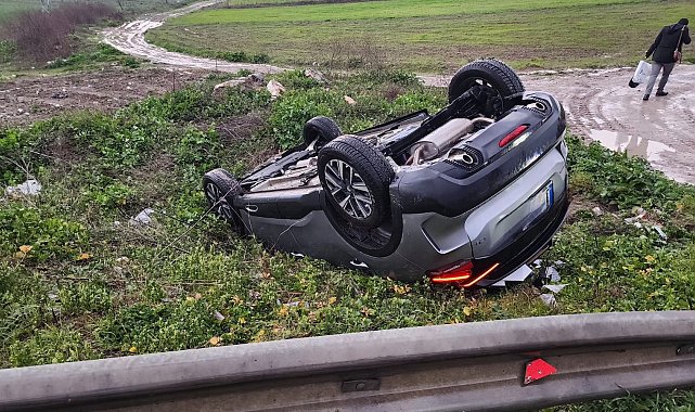 Gökhan ÖZHAN/ MUSTAFAKEMALPAŞA (Bursa), (DHA)- BURSA'da yanlış yola giren sürücünün kontrolünden çıkan otomobil, takla attı