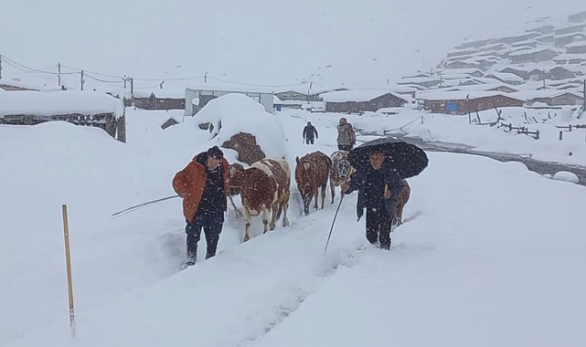 RİZE'nin Çamlıhemşin ilçesine bağlı Kavrun Yaylası, etkili olan kar yağışıyla beyaza büründü, ortaya güzel görüntüler çıktı. Kar yağışıyla zor anlar yaşayan besiciler, yayladan göçlerini hızlandırıp, hayvanlarıyla köylere inmek durumunda kaldı.Doğu Karadeniz'de kar yağışı ile birlikte yüksek rakımlı yaylalar beyaza büründü. Rize'nin Çamlıhemşin ilçesine bağlı 2 bin 300 rakımlı Kavrun Yaylası'nda kar yağışı etkili oldu. Evlerde buz sarkıtları da oluşan yaylanın beyaz örtüyle kaplanmasıyla, ortaya seyirlik manzaralar da çıktı. Bölgede hava koşulları elverdiği sürece yaylacılık geleneğini yaşatanlar ve yaylada kalmayı sürdüren besiciler, son günlerde ani bastıran kar yağışıyla dönüşe geçti. Kar yağışıyla zor anlar yaşayan besiciler, yayladan göçlerini hızlandırıp, kamyonlara yükledikleri hayvanlarıyla mezra ve köylere indi. Bölgede kar kalınlığı 1 metreye ulaşırken, yağışın etkisini sürdüreceği belirtildi.