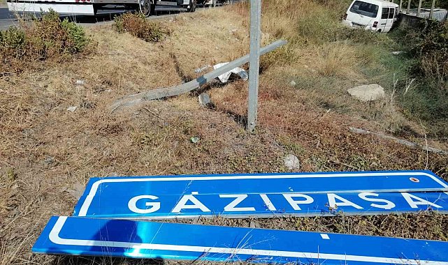 Antalya'nın Gazipaşa ilçesinde direksiyon hakimiyetini kaybeden minibüs sürücüsü, yol kenarındaki tabelaya çarpıp yaralandı.