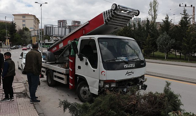 Ruken KADIOĞLU-Canberk ÖZTÜRK/ANKARA, (DHA)- ANKARA'da sürücüsü Nesim Silken'in (28) kontrolünden çıkan yük asansörlü kamyonet, kaldırımı aşıp yol kenarındaki parkta ağaçlara çarpıp durdu