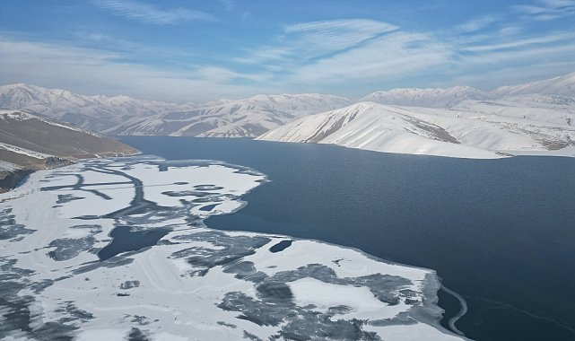 HAKKARİ'nin Yüksekova ilçesindeki Dilimli Baraj Gölü, etkili olan soğuk hava nedeniyle dondu. 2,5 kilometrelik alana sahip olan barajın yüzeyi 10 santimetre kalınlığında buzla kaplandı.Yüksekova ve çevresinde hafta içi etkili olan kar yağışı sonrası pazar günü de en düşük hava sıcaklığı eksi 20,6 derece olarak ölçüldü. Bölgede kar yağışı sonrası etkili olan dondurucu soğuklar hayatı olumsuz etkilerken, Yüksekova-Esendere kara yolu üzerinde ve ilçeye 5 kilometre uzaklıkta bulunan Dilimli Baraj Gölü'nün de donmasına neden oldu. 64 milyon metreküp su kapasiteli barajı gölünün yüzeyi yaklaşık 10 santimetre kalınlığında buzla kaplandı. Yüksekova'da yaşayan Kıyas Sırrı, "Bu yıl çok kar yağmadı ama soğuk bir kış mevsimi yaşıyoruz. Geceleri hava sıcaklığı sıfırın altında 20 dereceye kadar düşüyor. Baraj gölünün yüzeyi buzla kaplanıp güzel bir manzara ortaya çıkınca bölgeye gelerek fotoğraf çekmek istedim" dedi.